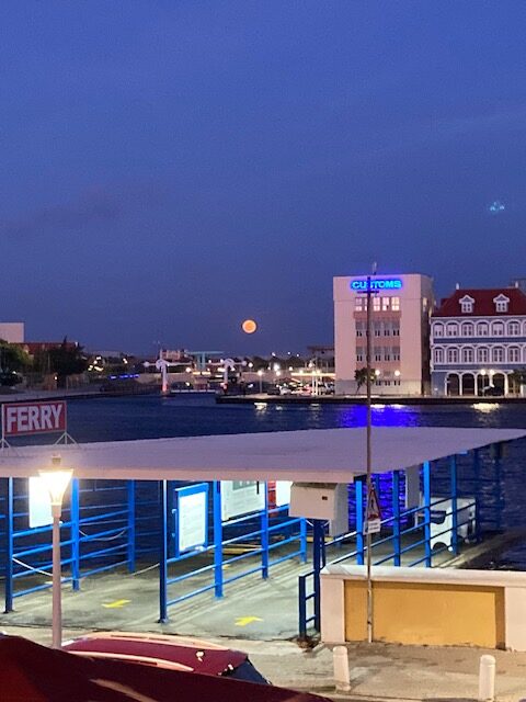 Ik ga buiten zitten en naar de volle maan kijken. Prachtig. Hoeveel volle manen heb ik hier al mogen meemaken?