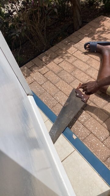 Dan met Mem terug naar Villa Kadushi, een schroevendraaier en een zaag mee. We zagen onder de deur door om de onderste balk van de deur wat bij te schaven, die heeft regen opgezogen en is daarom uitgezet. Beter zou het zijn om de deur eraf te halen en er een millimeter of twee af te schaven, maar zo doet ie het toch ook weer.